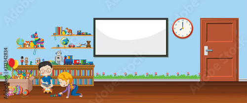 Fototapeta premium Background scene with whiteboard and toys