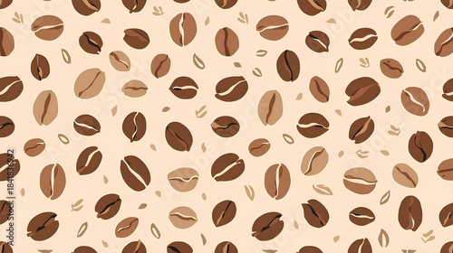 © Hashigo, Fototapeta premium 背景素材 コーヒー豆のシームレスパターン Background Seamless pattern Coffee beans Illustration (Generative AI)