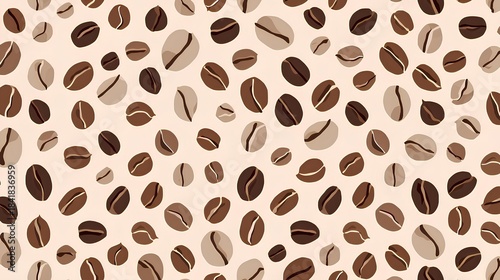 © Hashigo, Obraz premium 背景素材 コーヒー豆のシームレスパターン Background Seamless pattern Coffee beans Illustration (Generative AI)