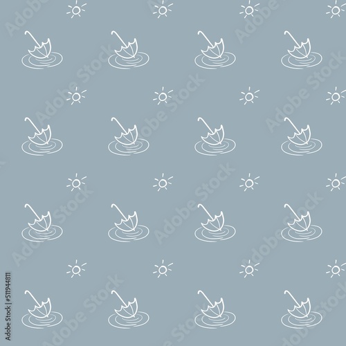 © Larisa Koyashova, Fototapeta premium Background, seamless texture, white umbrella on a gray background, outline drawing by hand, for textile and paper, web design