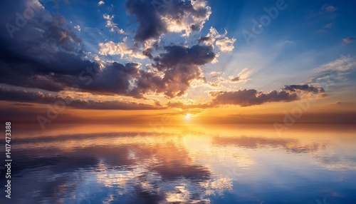 © Miller, Fototapeta premium Background sky during sunset and water reflections
