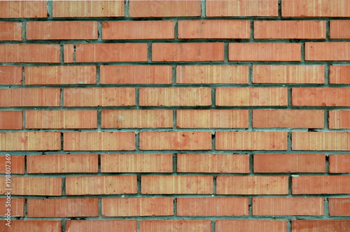Fototapeta premium Background - Striped bricks. Wall of red bricks.