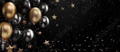 Fototapeta premium Background template design with luxury balloon foil and confetti ornaments.party and celebration flat lay banner