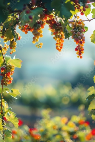 Fototapeta premium Background template with copy space of grape leaf and vine