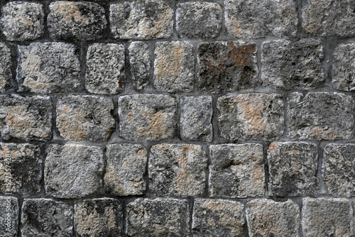 Fototapeta premium Background texture closeup of an old grey stone wall