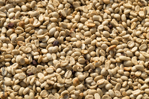 © sirintra, Fototapeta premium Background texture of green coffee beans