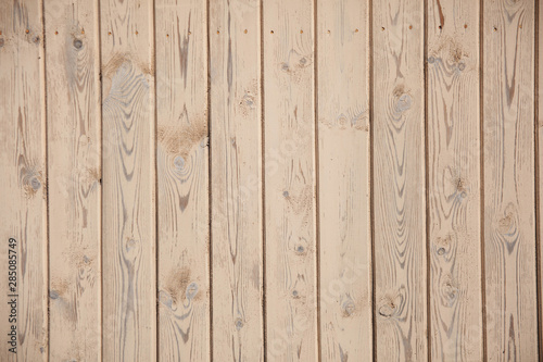 Fototapeta premium Background texture of old beige painted wooden lining boards wall