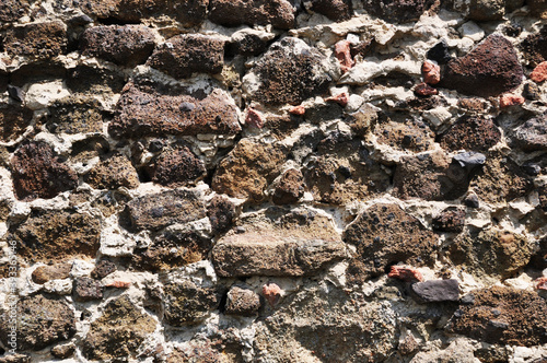Fototapeta premium Background, texture, porous stone masonry, on cement mortar
