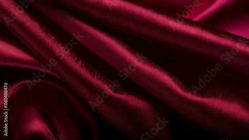 © Skoles, Obraz premium Background Texture: Silk Satin Wavy Velvet Material. Deep Dark Burgundy Crimson Abstract Background.