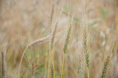 © Zeynel, Fototapeta premium Background view of ears of yellow wheat