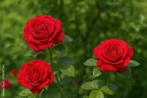 © AkuAku, Obraz premium Background wallpaper featuring a cluster of vibrant red roses and trees