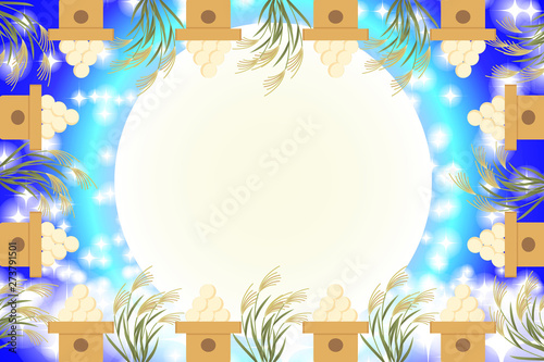 © TOMO00, Naklejka premium #Background #wallpaper #Vector #Illustration #design #image #Japan #china #Asia #free_size #背景 #壁紙 #ベクター #イラスト #デザイン #無料 #無料素材 #バックグラウンド #フリー素材 #イメージ #和風素材 #日本 月見,伝統行事,すすき,満月,十五夜,中秋の名月,団子,光,キラキラ,フリー