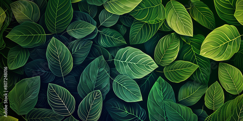 Fototapeta premium Background with a pattern of green leaves. Copy space.