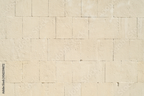 © Николай Батаев, Naklejka premium Background with a stone wall made of large blocks painted with beige paint