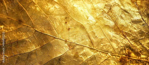 © Ilgun, Obraz premium Background with a texture resembling shiny gold foil on a yellow leaf with 'copy space image'.