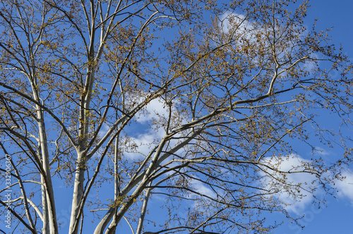 © claverinza, Obraz premium background with bare branches over sky with clouds