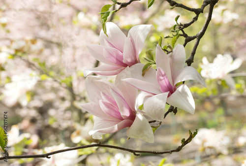 © julia_arda, Fototapeta premium Background with blooming pink magnolia flowers