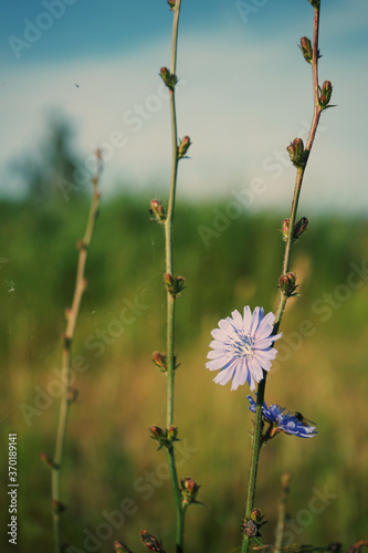 © Алёна Владимировна, Fototapeta premium background with blue chicory flower in minimal style