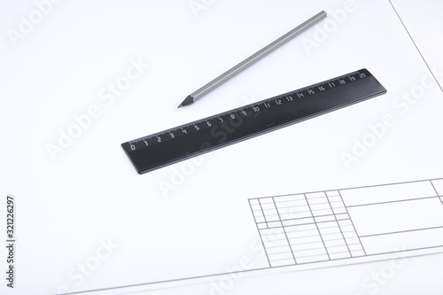 © Petr Smagin, Fototapeta premium background with drafting accessories and drafting paper