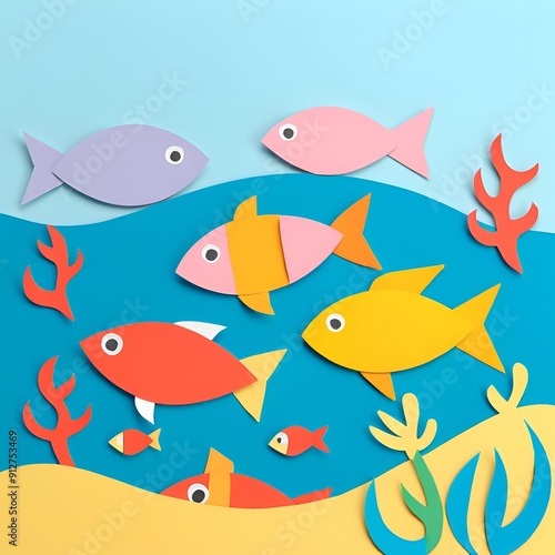© Soemsuk, Fototapeta premium background with fishes ,Generative ai