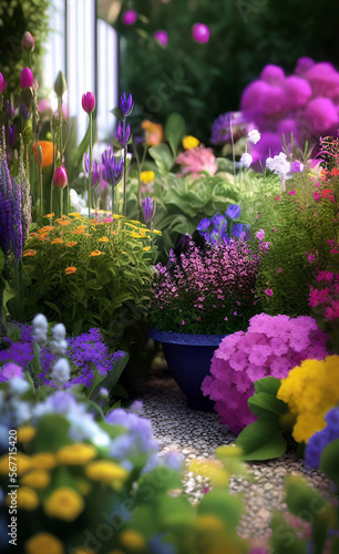 © Tiziano Cremonini, Obraz premium background with flowers, generative ai, sketch style illustration, these depiction is fictitious and generated