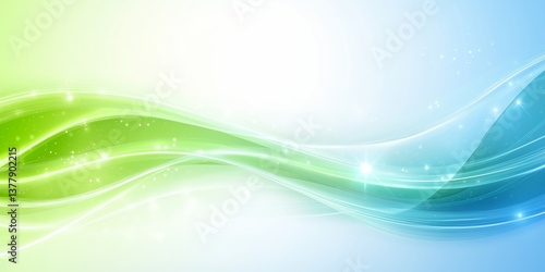 © KunArtworks, Fototapeta premium Background with glowing light blue and green lines, particles of data flowing in the air. abstract technology background. green wave tech background