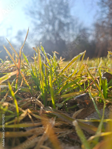 © Anna, Obraz premium background with grass in the sun rays close up