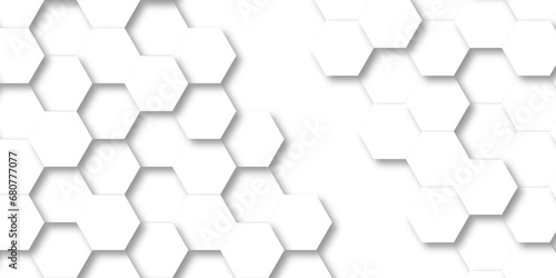 © MdLothfor, Naklejka premium Background with hexagons White Hexagonal Background. Luxury honeycomb grid White Pattern. Vector Illustration. 3D Futuristic abstract honeycomb mosaic white background. geometric mesh cell texture.