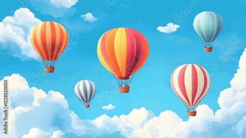 © ddaremmth, Naklejka premium Background with multicolored flying balloons in blue sky