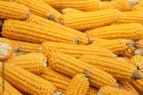 Fototapeta premium Background with several ripe yellow corn cobs