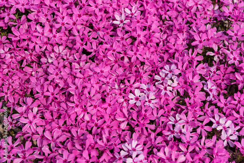 Obraz premium Background with small moss pink flowers, moss phlox