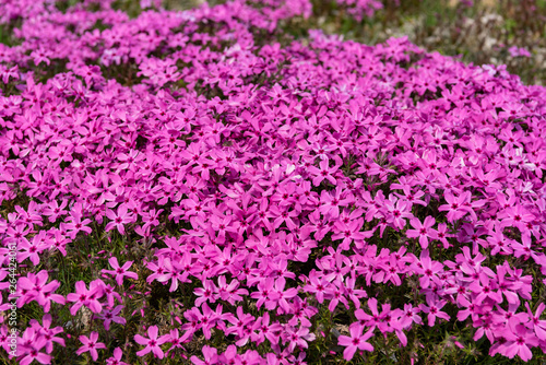 © pikumin, Naklejka premium Background with small moss pink flowers, moss phlox