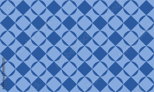Fototapeta premium background with spheres, seamless pattern with round squares checkerboard with star, blue tone and white round block checkerboard repeat pattern, replete image, design for fabric printing