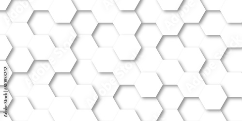 © MdLothfor, Fototapeta premium Background with white and black lines 3d Hexagonal structure futuristic white background and Embossed Hexagon , honeycomb white Background ,light and shadow ,Vector.
