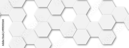 © Mirror, Naklejka premium Background with white and grey hexagonal lines, Abstract 3d hexagonal background with shadow. Abstract hexagonal concept technology, banner and wallpaper background.