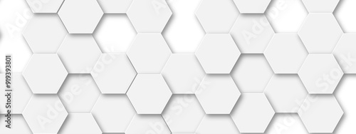 © Mirror, Naklejka premium Background with white and grey hexagonal lines, Abstract 3d hexagonal background with shadow. Abstract hexagonal concept technology, banner and wallpaper background.