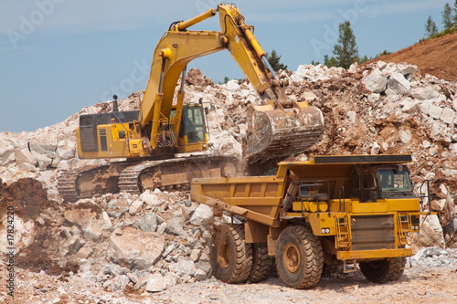 Obraz premium Backhoe and Dumptruck