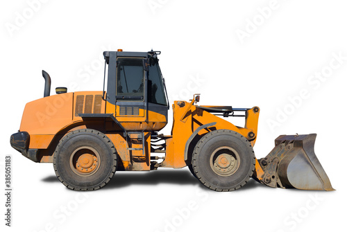 © Jacques Durocher, Fototapeta premium backhoe excavator bulldozer road construction equipment digger shovel isolated on white background