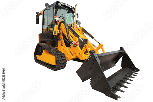 © ValentinValkov, Fototapeta premium Backhoe loader or bulldozer - excavator with clipping path isola
