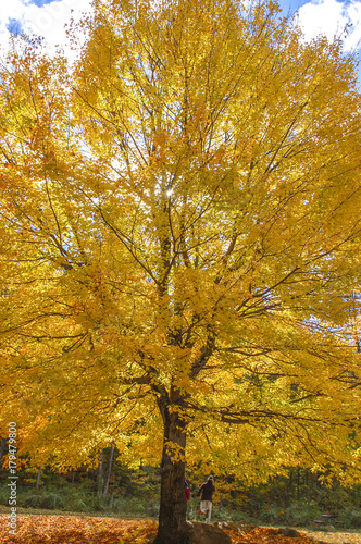 © Douglas, Obraz premium Backlit bright yellow tree during fall