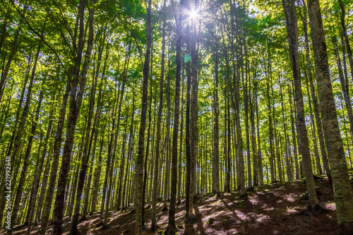Naklejka premium Backlit Forest Flooded with Sunlight