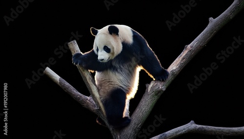 Obraz premium Backlit Giant Panda on Tree Branch with Dramatic Lighting