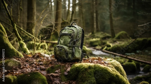 © sevector, Obraz premium backpack green camo