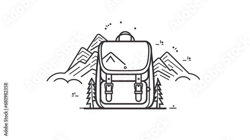 Fototapeta premium Backpack icon outline logo camping and mountains
