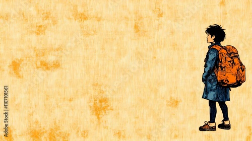 Obraz premium Backpackers captured mid-journey, crossing a picturesque meadow, reflecting...