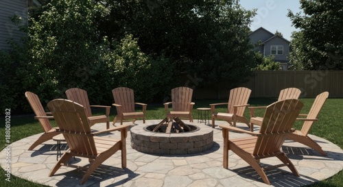 © soleh, Obraz premium Backyard fire pit with Adirondack chairs