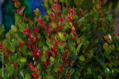 Obraz premium Backyard Shrub with Red Flower in backyard