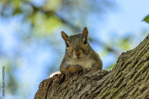 Obraz premium Backyard squirrel looking down from tree