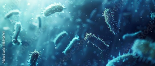 Fototapeta premium Bacteria in the air, microscopic pathogens, health hazard, infection prevention, floating particles