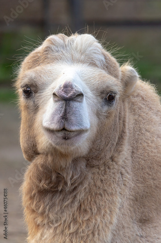 © Larysa, Fototapeta premium Bactrian camel. Desert caravan. Camel's muzzle close up. Soft, sandy coat. Inhabitant of Asia. Contact zoo. Taking care of wild animals. Large whaletipodactyl.